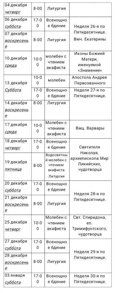 • РАСПИСАНИЕ БОГОСЛУЖЕНИЙ с 6 ноября 2025 по 4 января 2026